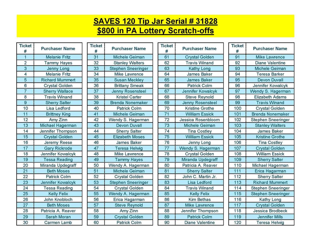 We sold out that last 120 jar in near record time, so here are the ticket assignments! We should livestream the winner reveal later today and get our next jar up. We will be having a duplicate of this one next, but after that, we will be offering a much bigger prize - so stay tuned!
